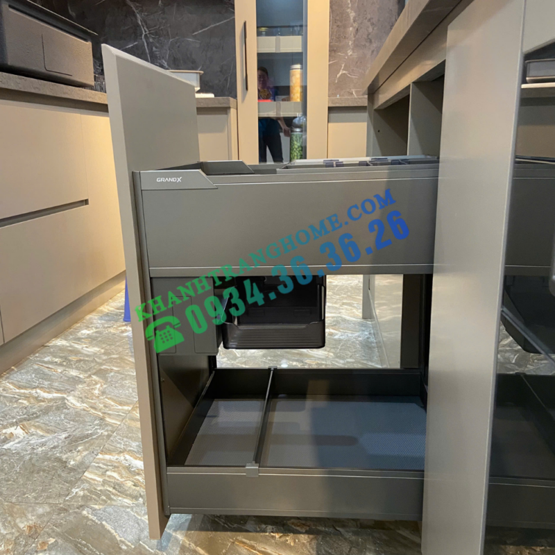 - Bên cạnh đó, hệ ray giảm chấn đạt chuẩn Châu Âu cho phép vận hành êm ái, kéo – đẩy nhẹ nhàng ngay cả khi chứa tải trọng lớn đến 45kg. Với những ưu điểm này, giá gia vị GrandX XS.40T là lựa chọn đáng đầu tư cho căn bếp hiện đại.