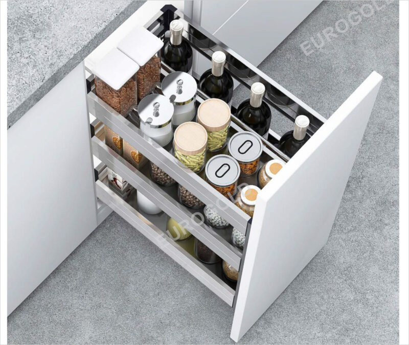 - Giá gia vị hộp Eurogold EUB4530 được thiết kế dành riêng cho khoang tủ rộng 300mm với kích thước W260 x D450 x H530mm, mang đến giải pháp lưu trữ gọn gàng và khoa học cho không gian bếp hiện đại. Thiết kế âm tủ tinh tế kết hợp cấu trúc 3 tầng giúp tận dụng tối đa chiều cao và chiều sâu của tủ, cho phép sắp xếp nhiều chai lọ gia vị một cách ngăn nắp, dễ quan sát và thuận tiện khi sử dụng trong quá trình nấu nướng hàng ngày.