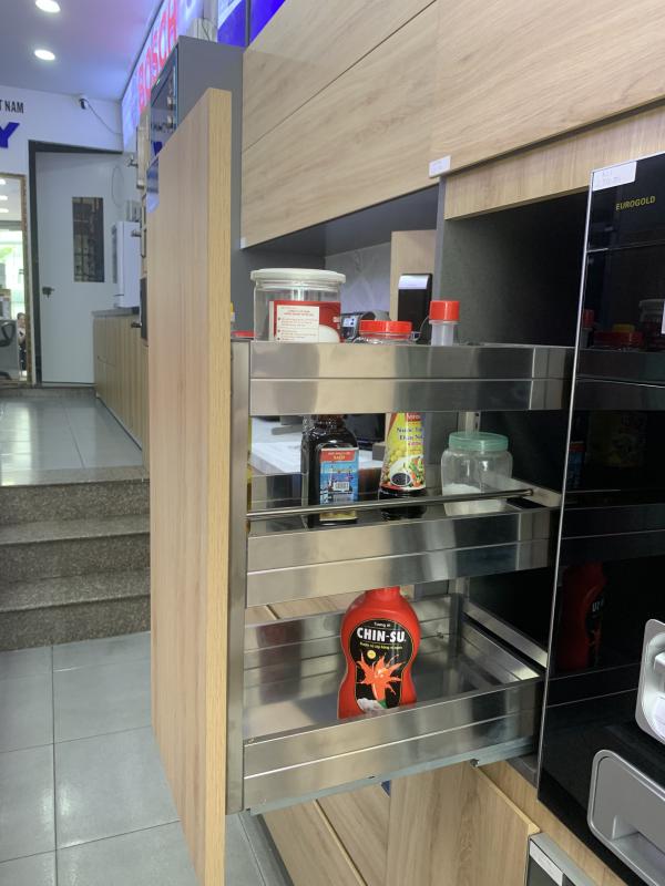 - Về công năng sử dụng, Eurogold EUB4535 sở hữu tải trọng tốt, đáp ứng nhu cầu lưu trữ đa dạng từ các chai lọ gia vị nhỏ đến những chai có dung tích lớn. Các tầng được bố trí hợp lý, giúp chai lọ đứng vững, hạn chế xô lệch hay va chạm, mang lại sự an tâm và tiện lợi khi sử dụng hằng ngày. Thiết kế này đặc biệt phù hợp với những gia đình thường xuyên nấu nướng và cần không gian lưu trữ khoa học, dễ thao tác.