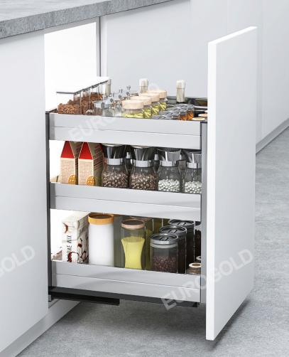 - Giá gia vị hộp Eurogold EUB4540 gây ấn tượng với thiết kế hiện đại, dạng hộp chắc chắn và bố cục 3 tầng khoa học. Kích thước W360D450H530mm được tính toán chuẩn xác để lắp đặt gọn gàng trong khoang tủ bếp rộng 400mm, giúp tận dụng tối đa không gian lưu trữ. Tổng thể sản phẩm mang đến cảm giác vuông vắn, cứng cáp và phù hợp với nhiều phong cách bếp hiện đại.