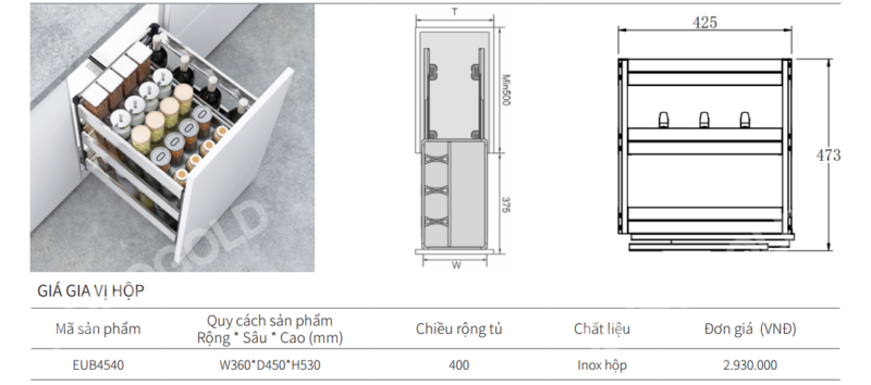 THÔNG SỐ KỸ THUẬT GIÁ GIA VỊ HỘP EUROGOLD EUB4540