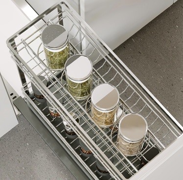 Thiết kế 2 tầng thông minh cho phép bố trí nhiều loại chai lọ gia vị một cách gọn gàng và dễ quan sát. Các vật dụng được phân chia rõ ràng, thuận tiện khi lấy và cất trong quá trình nấu nướng. Nhờ đó, không gian tủ bếp luôn được sắp xếp khoa học và sạch sẽ. - Tải trọng tốt, đáp ứng nhu cầu sử dụng hằng ngày