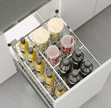 Thiết kế 2 tầng thông minh cho phép bố trí nhiều loại chai lọ gia vị một cách gọn gàng và dễ quan sát. Các chai lọ được phân chia rõ ràng, cố định chắc chắn, hạn chế xô lệch hay đổ ngã khi đóng mở tủ. Nhờ cách sắp xếp khoa học này, người nội trợ thao tác nhanh hơn và tiết kiệm thời gian khi nấu nướng. - Tải trọng tốt, đáp ứng đa dạng nhu cầu lưu trữ