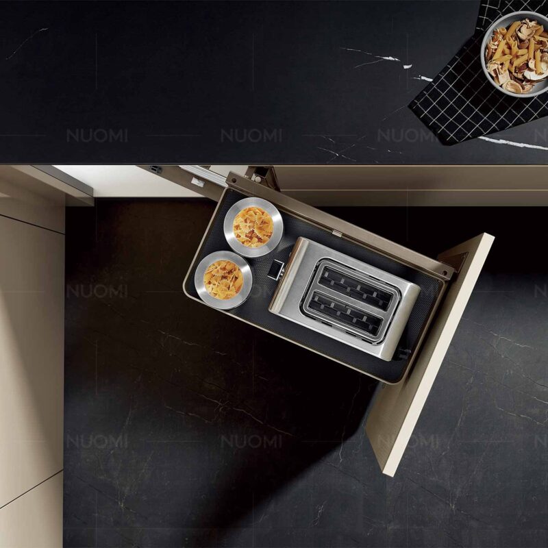 Hệ thống ray trượt và cơ cấu liên hoàn của Eurogold EUM102R được thiết kế để hoạt động nhịp nhàng, ít tiếng ồn và nhẹ nhàng khi kéo mở. Khi đóng lại, các rổ liên hoàn nằm thẳng hàng giúp cửa tủ khít chặt, bảo vệ đồ dùng khỏi côn trùng và bụi bẩn.