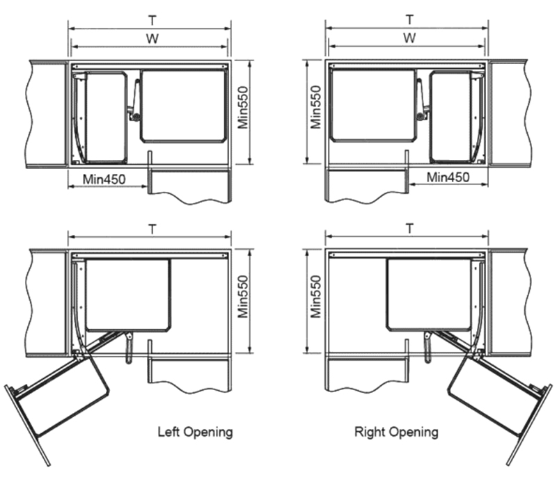 Eurogold EUM102R được thiết kế để lắp âm vào khoang góc tủ rộng từ 900–1000 mm, dễ dàng thi công và đồng bộ với nhiều kiểu cánh tủ (gỗ, nhôm, MDF…). Việc lắp đặt nhanh chóng giúp tiết kiệm thời gian và phù hợp với các dự án bếp hiện đại.