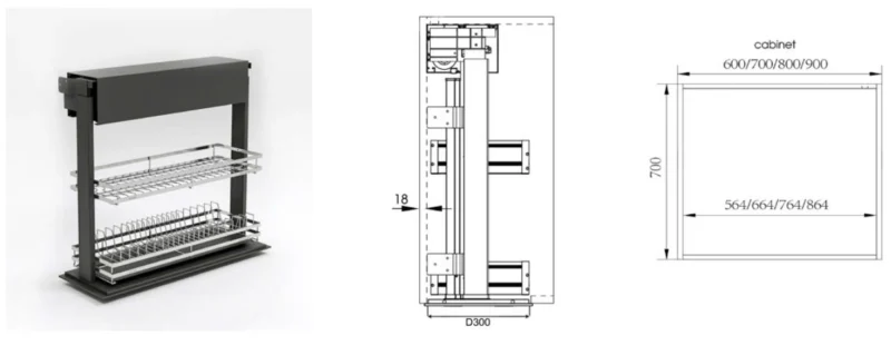 Sản phẩm được thiết kế chuyên dụng cho khoang tủ bếp trên có chiều rộng 800mm, đảm bảo lắp đặt vừa vặn, tối ưu không gian lưu trữ và tăng tính thẩm mỹ cho tổng thể hệ tủ bếp.