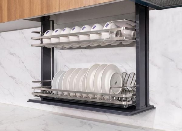 Toàn bộ khung và rổ bát được làm từ inox 304 cao cấp, có khả năng chống oxy hóa và han gỉ vượt trội trong môi trường ẩm của tủ bếp. Chất liệu này không chỉ bền bỉ theo thời gian mà còn an toàn khi tiếp xúc trực tiếp với bát đĩa và đồ dùng nhà bếp.