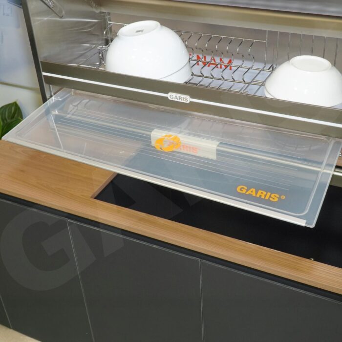 GIÁ NHÔM NÂNG HẠ BÁT ĐĨA GARIS GL06.70AG - Khay hứng nước nhựa cao cấp được thiết kế tháo lắp dễ dàng để vệ sinh, giúp giữ cho khoang tủ bếp luôn khô ráo và sạch sẽ.