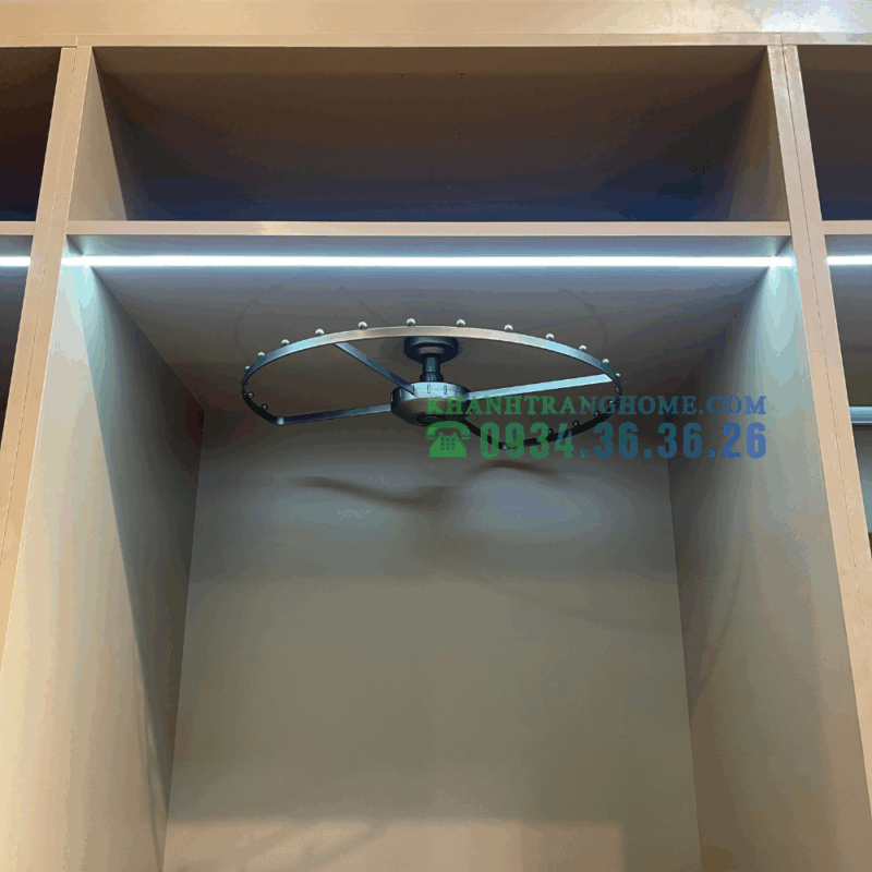- Thiết kế nhỏ gọn, dễ lắp đặt: Với đường kính Ø520mm và chiều cao C125mm, sản phẩm tương thích với tủ có kích thước tối thiểu 764mm, dễ dàng lắp đặt trong nhiều loại tủ quần áo khác nhau.