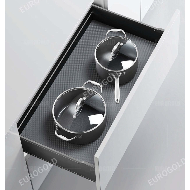 - Giá xoong nồi Eurogold EMG6580 được trang bị hệ ray trượt giảm chấn chất lượng cao, cho thao tác đóng mở nhẹ nhàng, êm ái và không gây tiếng ồn. Ray có tải trọng lớn, đảm bảo độ ổn định và an toàn khi lưu trữ nhiều xoong nồi nặng. Thiết kế này giúp nâng cao trải nghiệm sử dụng, mang lại sự tiện nghi trong sinh hoạt hằng ngày.