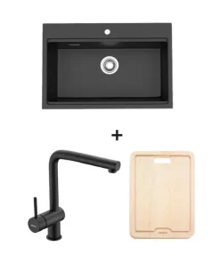 - Không chỉ cung cấp chậu và vòi bếp, gói sản phẩm này còn đi kèm một thớt gỗ tự nhiên, mang đến sự tiện lợi và đa dạng trong việc chuẩn bị thực phẩm.