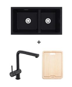 - Thiết kế sang trọng và hiện đại: Gói sản phẩm chậu và vòi bếp Essence 3 có thiết kế sang trọng và hiện đại, tạo điểm nhấn nổi bật cho không gian bếp của bạn. Chậu đá màu đen và vòi bếp đá cùng nhau tạo nên sự kết hợp hài hòa, đem lại vẻ đẹp thẩm mỹ và sự tinh tế cho không gian bếp.