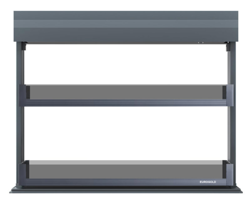 Kệ gia vị nâng hạ điện Eurogold ESL8880 sở hữu thiết kế tinh tế với khung hợp kim nhôm màu ghi đậm kết hợp vách kính cường lực trong suốt. Sự kết hợp này không chỉ tạo cảm giác cao cấp, hiện đại mà còn giúp không gian bếp trở nên thoáng và gọn gàng hơn, dễ quan sát các chai lọ gia vị bên trong.
