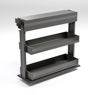 Sản phẩm được trang bị hệ thống nâng hạ bằng động cơ điện tự động với cảm ứng 1 chạm. Chỉ cần thao tác nhẹ, kệ sẽ di chuyển lên xuống theo phương thẳng đứng một cách êm ái, mượt mà, giúp người dùng dễ dàng lấy hoặc cất gia vị mà không cần với cao hay dùng nhiều lực.