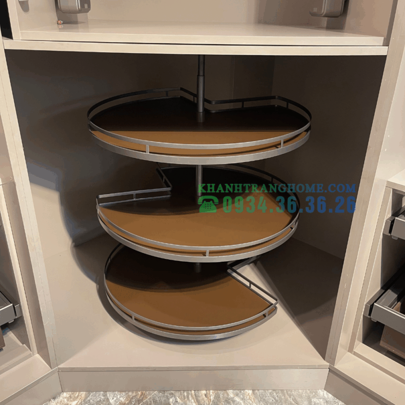 - Kích thước chuẩn, dễ lắp đặt: Phù hợp với kích thước tủ ≥764mm, đường kính kệ Ø710mm, chiều cao điều chỉnh linh hoạt từ 935–1085mm, thích hợp với nhiều kiểu tủ khác nhau.