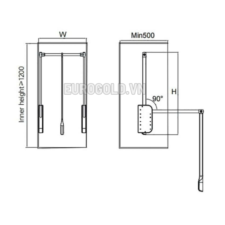 THÔNG SỐ KỸ THUẬT Kệ treo quần áo nâng hạ di động EUROGOLD EAG1080