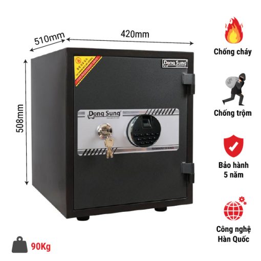 - Két Bảo mật DS-50VT được thiết kế và chế tạo để chống cháy và chống trộm nhằm bảo vệ tài sản bên trong một cách an toàn nhất. Khả năng chống lửa lên đến 1.250 ° F trong 2 giờ.