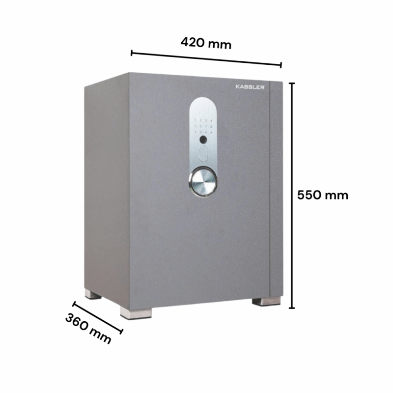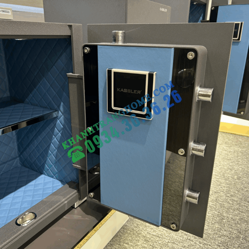 - Két sắt thông minh KASSLER KL-55H8 BG là lựa chọn lý tưởng cho gia đình và văn phòng hiện đại, nơi đề cao yếu tố an toàn và thẩm mỹ. Sản phẩm được phát triển theo tiêu chuẩn công nghệ Đức, sở hữu thiết kế tinh tế với gam màu xám xanh sang trọng, kết hợp cùng công nghệ khóa đa lớp gồm vân tay, mật mã, chìa cơ và ứng dụng điều khiển qua điện thoại.