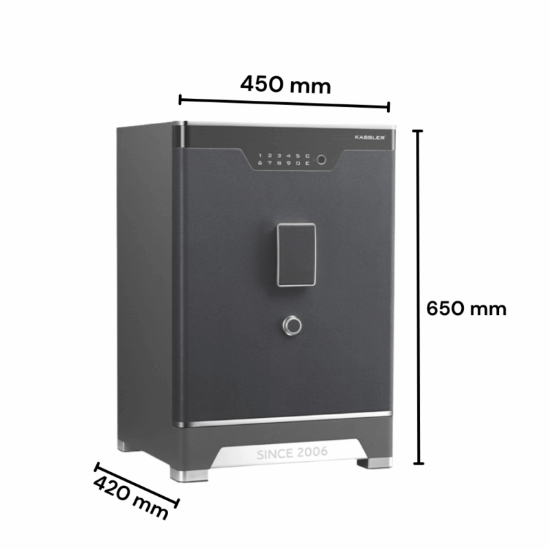Két sắt thông minh KASSLER KL-65LS6 – thiết kế nhỏ gọn, khóa vân tay & mã số điện tử an toàn, chất liệu thép cao cấp, bảo vệ tài sản tối ưu cho gia đình & văn phòng.