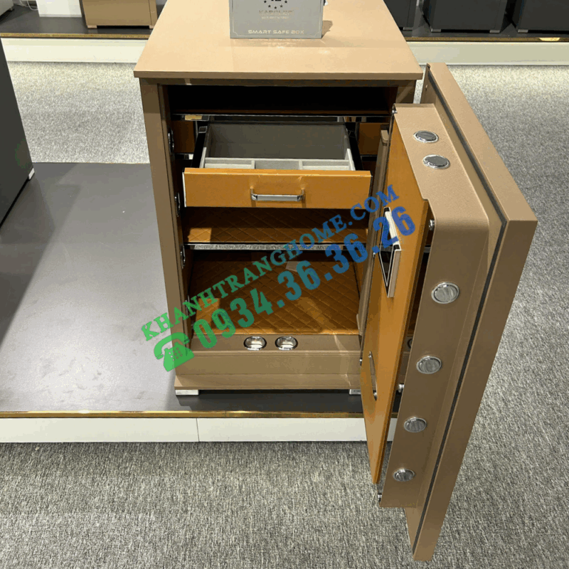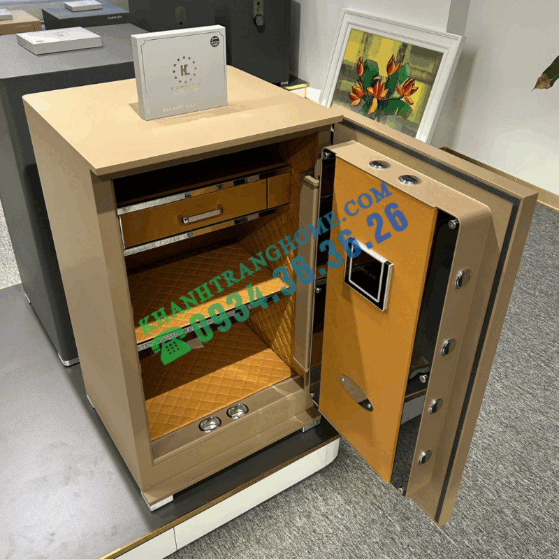 Mới nhận KASSLER KL‑85LS7 Gold – nhìn vàng bóng siêu sang, để phòng khách là “chất” hẳn. Mở khóa điện tử nhanh, khoang chứa rộng để cả laptop với túi xách. Giao hàng nhanh, cảm thấy rất ok!
