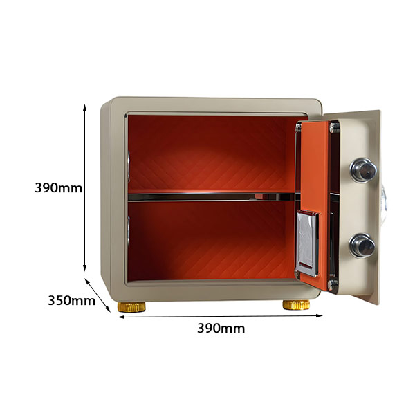 Két sắt Liberty LB39S vàng gây ấn tượng với kiểu dáng nhỏ gọn, hiện đại cùng tông màu vàng nổi bật, phù hợp nhiều không gian nội thất. Bên trong két được bọc da cao cấp màu cam, mang lại cảm giác sang trọng và tinh tế khi sử dụng. Từng chi tiết hoàn thiện tỉ mỉ giúp sản phẩm không chỉ an toàn mà còn mang giá trị thẩm mỹ cao. - Bảo mật đa lớp với công nghệ vân tay hiện đại