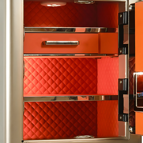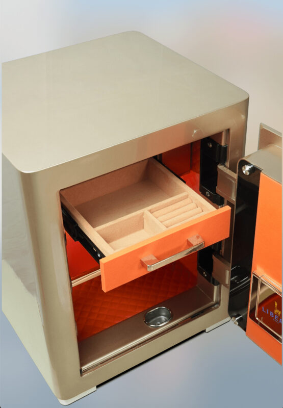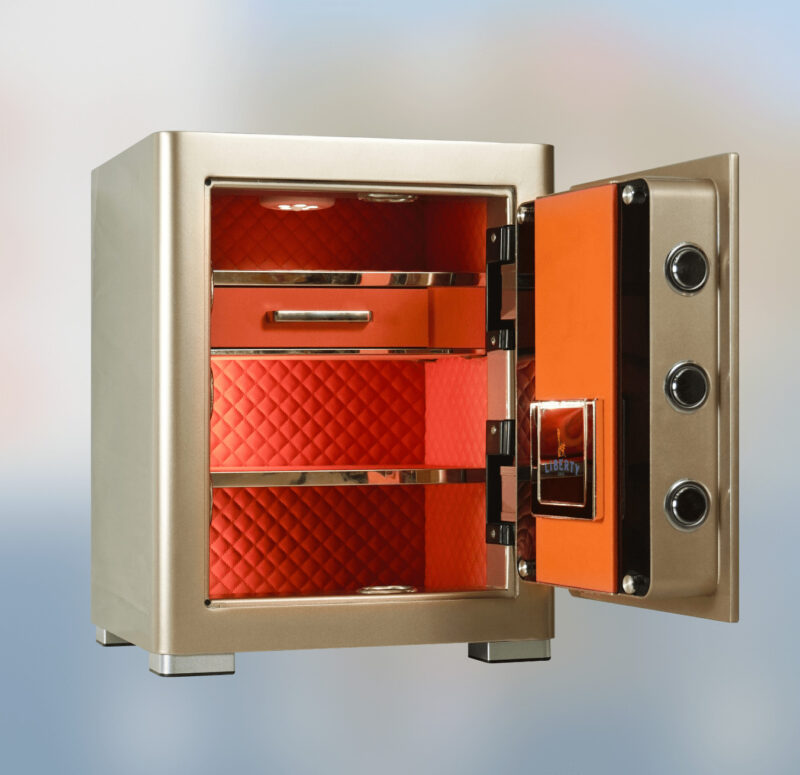 - Két sắt Liberty LB58PRO Special Edition Vàng Đồng gây ấn tượng với thiết kế sang trọng, gam màu vàng đồng nổi bật mang đến vẻ đẹp đẳng cấp và hiện đại. Kiểu dáng nhỏ gọn dạng đứng giúp dễ dàng bố trí trong nhiều không gian khác nhau, từ phòng ngủ đến văn phòng. Nội thất bên trong được bọc da thủ công cao cấp, tạo cảm giác tinh tế và khác biệt ngay từ cái nhìn đầu tiên.