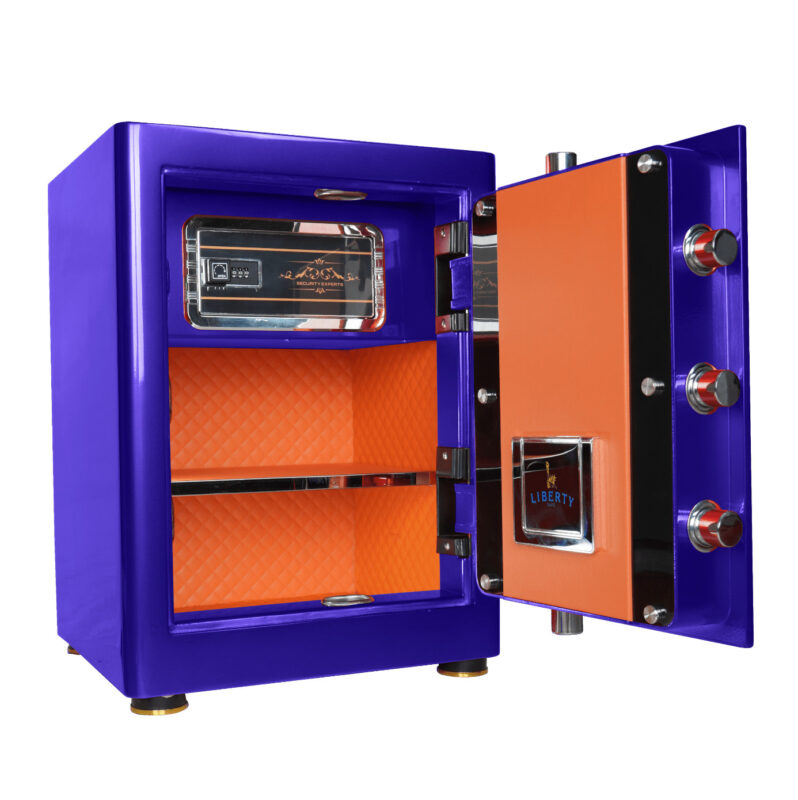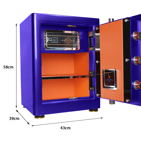 Két sắt Liberty LB58S Special Edition Xanh Tím nổi bật với gam màu cá tính, tạo điểm nhấn khác biệt và hiện đại cho không gian nội thất. Bên trong két được bọc da thủ công cao cấp, từng chi tiết hoàn thiện tỉ mỉ mang lại cảm giác sang trọng và tinh tế. Sản phẩm không chỉ bảo vệ tài sản mà còn góp phần thể hiện phong cách và gu thẩm mỹ riêng của gia chủ. - Bảo mật đa lớp với công nghệ vân tay hiện đại