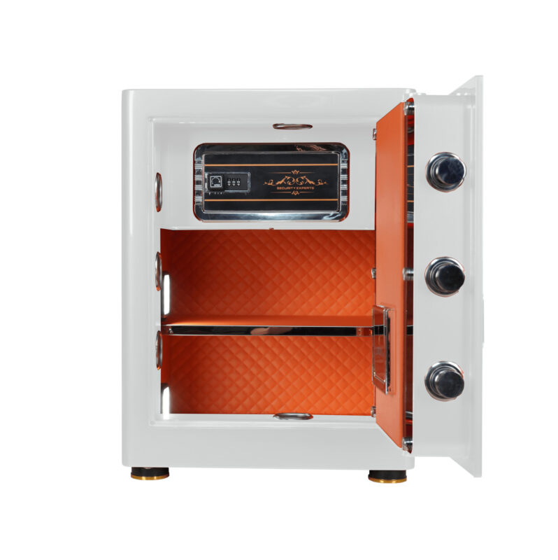 Két sắt Liberty LB58S Special Edition Trắng sở hữu gam màu trắng tinh tế, mang đến vẻ đẹp hiện đại và dễ dàng hòa hợp với nhiều không gian nội thất. Bên trong két được bọc da thủ công cao cấp, từng đường may được hoàn thiện tỉ mỉ, tạo nên sự sang trọng và khác biệt. Sản phẩm không chỉ là thiết bị bảo vệ tài sản mà còn góp phần nâng tầm phong cách sống. - Bảo mật đa lớp với công nghệ vân tay hiện đại