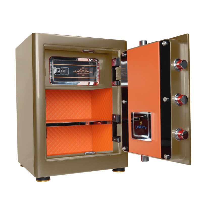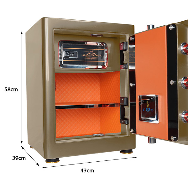 Két sắt Liberty LB58S Special Edition Vàng Đồng nổi bật với gam màu vàng đồng đẳng cấp, mang đến vẻ đẹp sang trọng và quyền lực cho không gian. Nội thất bên trong được bọc da thủ công cao cấp, từng chi tiết hoàn thiện tinh xảo, tạo cảm giác chỉn chu và khác biệt. Sản phẩm không chỉ là nơi lưu trữ tài sản mà còn là điểm nhấn nội thất đầy tinh tế. - Bảo mật đa lớp với công nghệ vân tay hiện đại