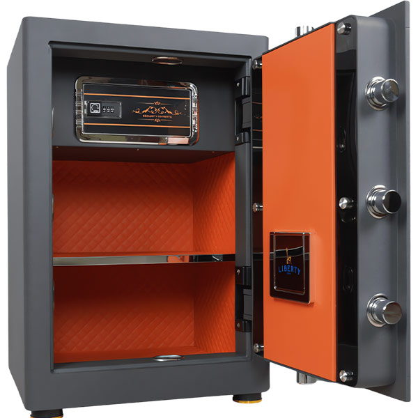 Két sắt Liberty LB68S Nỉ Xám sở hữu gam màu trung tính sang trọng, dễ dàng phối hợp với nhiều phong cách nội thất khác nhau. Bên trong được bọc da cao cấp, mang lại cảm giác tinh tế và gọn gàng khi sử dụng. Tổng thể thiết kế vừa chắc chắn vừa thẩm mỹ, phù hợp cho không gian sống cao cấp. - Bảo mật đa tầng với công nghệ mở khóa 4IN1