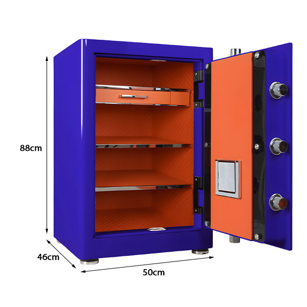 - Về khả năng bảo mật, két được trang bị hệ thống vân tay sinh trắc học kết hợp mã số điện tử và chìa khóa chống sao chép, tạo nên cơ chế bảo vệ đa lớp an toàn cao. Công nghệ chốt xoay cùng hệ thống chốt inox đặc giúp tăng cường khả năng chống cạy phá hiệu quả. Nhờ đó, người dùng có thể yên tâm lưu trữ các tài sản quan trọng với mức độ an ninh tối ưu.