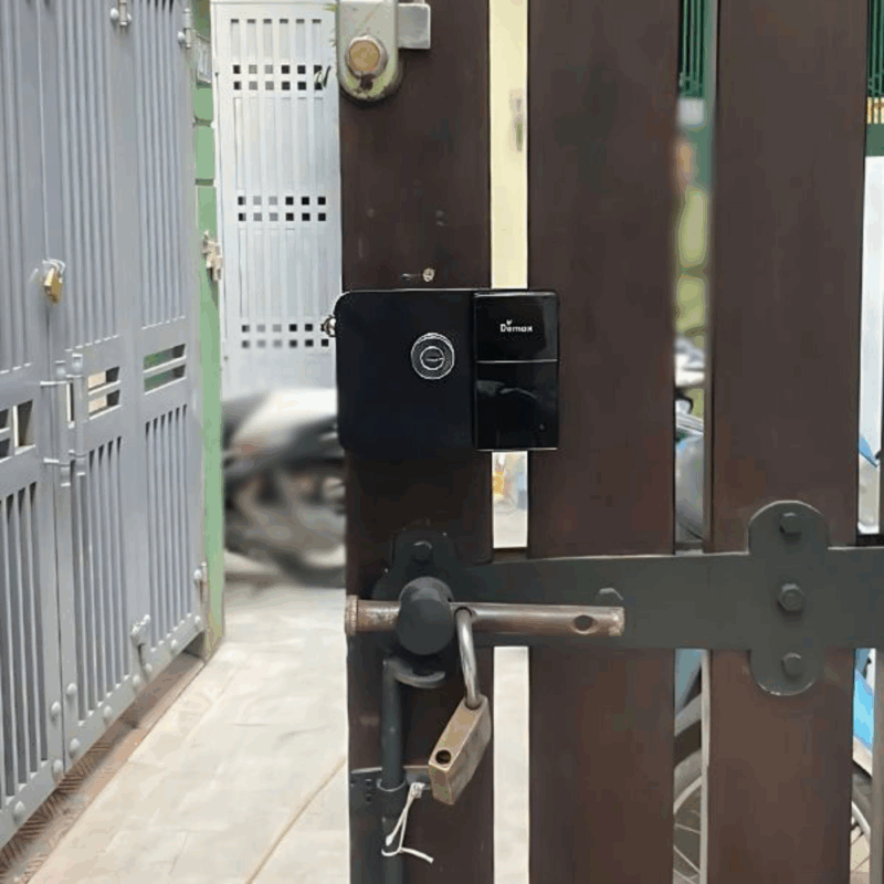 HÌNH ẢNH THỰC TẾ Khóa cửa cổng DEMAX EL608 GB CNC App Wifi+Remote LẮP ĐẶT TẠI NHÀ QUÝ KHÁCH HÀNG