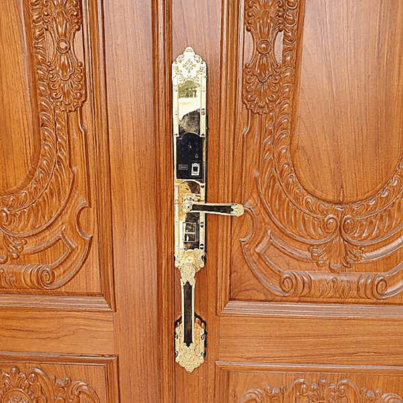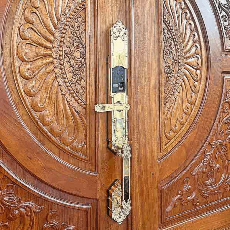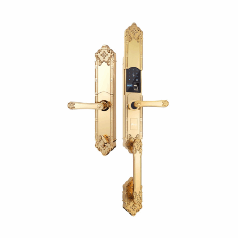 - Sản phẩm gây ấn tượng mạnh mẽ với lớp mạ vàng 24K tinh xảo, kết hợp chất liệu hợp kim kẽm cao cấp và thân khóa thép không gỉ SUS304, vừa bền chắc, chống cắt phá hiệu quả, vừa mang lại vẻ đẹp đẳng cấp, nâng tầm kiến trúc ngôi nhà.