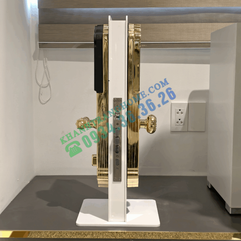 - Mặt khóa ngoài: Hợp kim, mạ Vàng 24K (chống xuống màu theo thời gian)