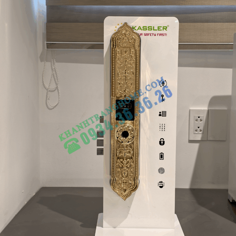 Khóa đại sảnh Kassler KL‑929F là mẫu khóa thông minh cao cấp được thiết kế dành riêng cho không gian đại sảnh sang trọng như biệt thự, khách sạn hoặc văn phòng vị trí cao cấp. Sản phẩm sở hữu thiết kế tân cổ điển tinh tế, chất liệu hợp kim mạ vàng 24K bền đẹp, cùng hệ thống bảo mật tối ưu với nhiều phương thức mở khóa hiện đại.