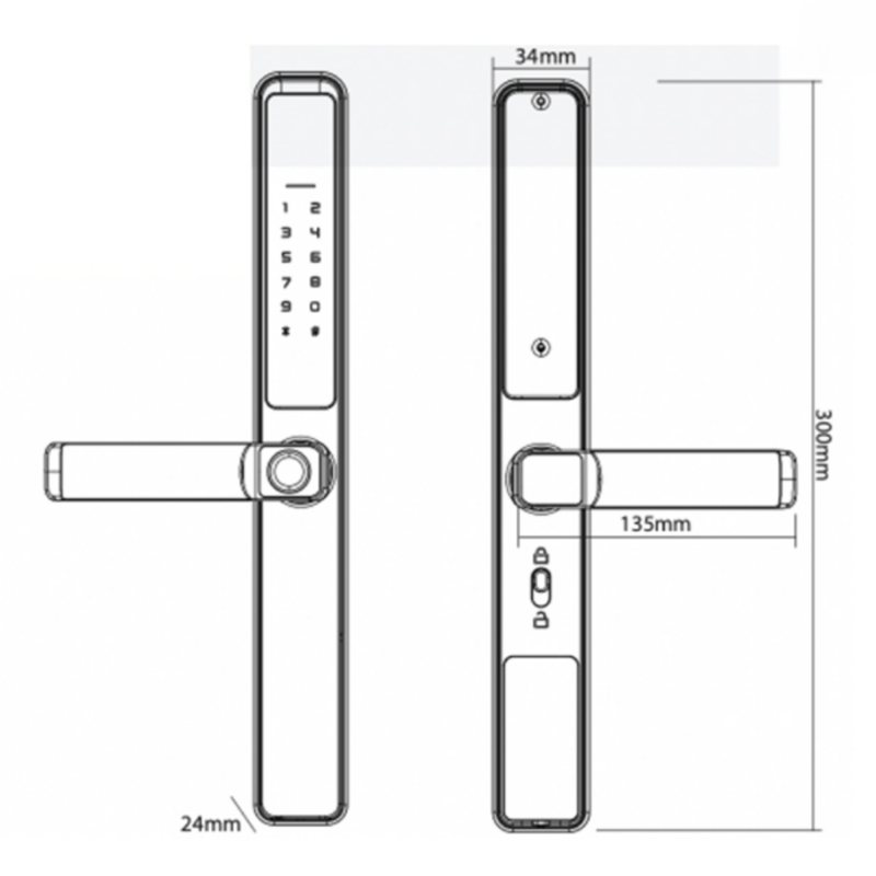 - Dễ Dàng Vận Hành và Lắp Đặt: Khóa có thể lưu trữ đến 100 vân tay, 100 thẻ từ, và 100 mã số, phù hợp cho các hộ gia đình lớn hoặc doanh nghiệp nhỏ. Độ dày của khóa có thể điều chỉnh từ 35 đến 90mm và phù hợp với đố cửa có độ rộng ≥ 55mm, đồng thời tương thích với nhiều loại ruột khóa khác nhau.