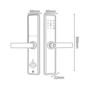 - Kích thước thân khóa ngoài: R 60 x C 360 x D 22 mm