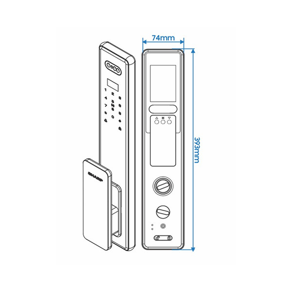 - Kích thước: Thân khóa: D393mm x R74mm.