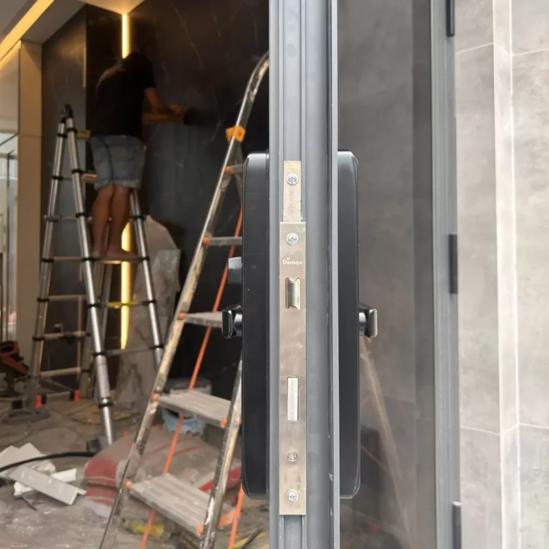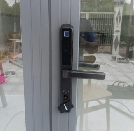 HÌNH ẢNH THỰC TẾ Khóa vân tay cửa nhôm Demax SL506 BL LẮP ĐẶT TẠI NHÀ QUÝ KHÁCH HÀNG