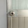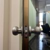 Để reset khóa nhấn nút tròn đen ở khóa mặt trong gần tay cầm