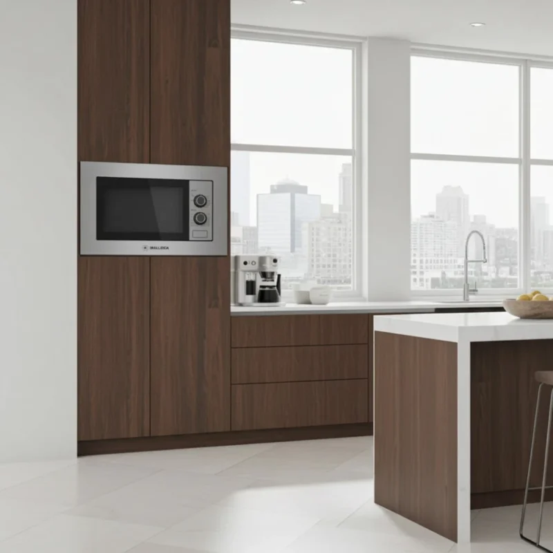 - Lò vi sóng Malloca MW-820 ECO mang lại cảm giác sử dụng ổn định và thực tế ngay từ những ngày đầu lắp đặt. Kiểu lắp âm giúp căn bếp gọn gàng hơn, không chiếm diện tích mặt bàn và tạo sự liền mạch với hệ tủ, đặc biệt phù hợp với không gian bếp căn hộ hoặc nhà phố hiện đại. Trong quá trình sử dụng hằng ngày, lò vận hành khá êm, ít rung và không gây cảm giác khó chịu khi đặt trong khu vực bếp kín.