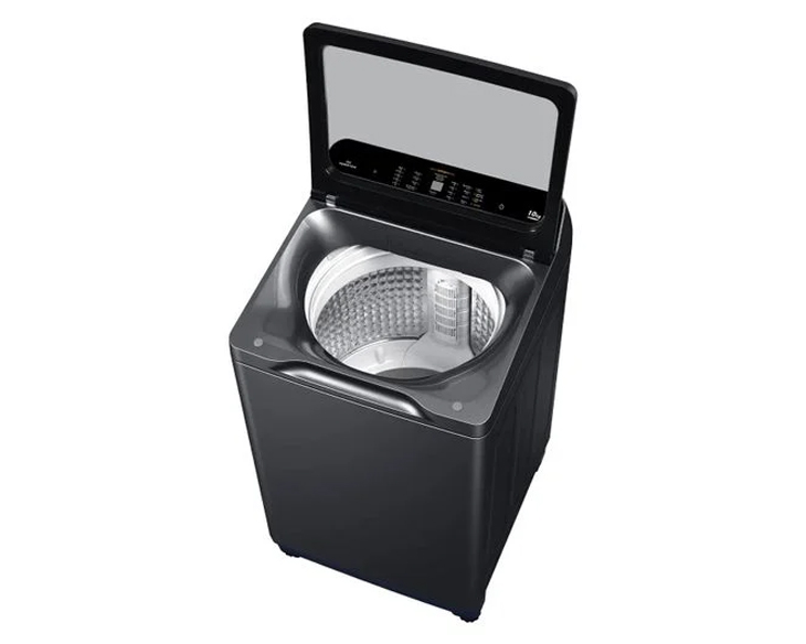 - Máy giặt Aqua Inverter 10 kg AQW-DR100JT(BK) sở hữu thiết kế cửa trên hiện đại với tông màu đen sang trọng, dễ phối hợp với nhiều không gian giặt giũ. Kiểu dáng gọn gàng nhưng chắc chắn, nắp kính cường lực trong suốt vừa bền bỉ vừa thuận tiện quan sát quá trình giặt bên trong. Tổng thể máy mang lại cảm giác cao cấp và phù hợp cho gia đình từ 3–5 người.