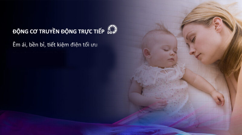 Động cơ truyền động trực tiếp DD Inverter giúp máy vận hành êm, giảm rung lắc và tiếng ồn khi giặt. Đồng thời, công nghệ này còn giúp tiết kiệm điện năng hiệu quả và tăng tuổi thọ cho máy giặt.