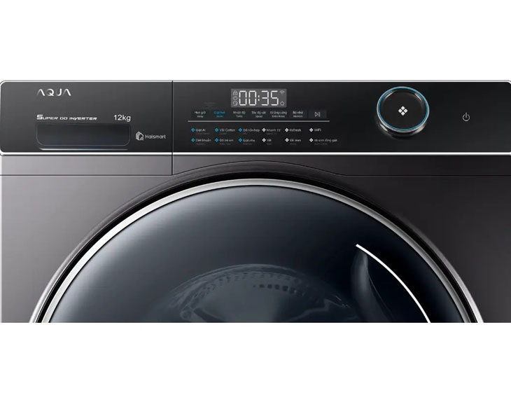 - Ngoài ra, máy giặt Aqua AW12-B4959U1K(B) còn sở hữu nhiều tiện ích hiện đại: đèn chiếu sáng lồng giặt, khóa trẻ em, hẹn giờ giặt và kết nối Wi-Fi qua ứng dụng Haismart. Người dùng có thể điều khiển từ xa, theo dõi tiến trình giặt và cài đặt chế độ dễ dàng, rất phù hợp cho gia đình bận rộn, vừa tiện lợi vừa bảo vệ quần áo hiệu quả.