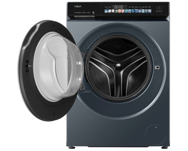- Máy giặt Aqua Inverter 12 kg AW12-BD4377U1L(GN) sở hữu thiết kế cửa trước hiện đại với tông màu xám xanh sang trọng, mặt cửa kính chịu lực trong suốt tạo điểm nhấn cao cấp cho không gian giặt giũ. Kiểu dáng gọn gàng nhưng chắc chắn, phù hợp với nhiều phong cách nội thất từ căn hộ đến nhà phố. Lồng giặt lớn giúp thao tác cho – lấy đồ thuận tiện hơn.