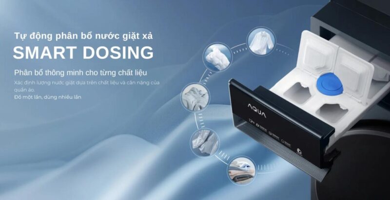 - Smart Dosing – Tự động phân bổ nước giặt, nước xả