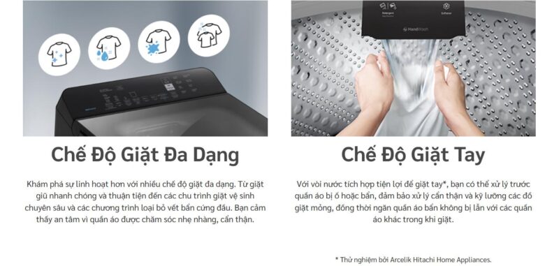 Máy được trang bị chế độ giặt tay chuyên dụng, mô phỏng các động tác giặt nhẹ nhàng bằng tay. Luồng nước được kiểm soát tối ưu để làm sạch hiệu quả nhưng vẫn bảo vệ các loại vải mỏng, tinh xảo, phù hợp với quần áo cao cấp hoặc đồ dễ hư tổn.