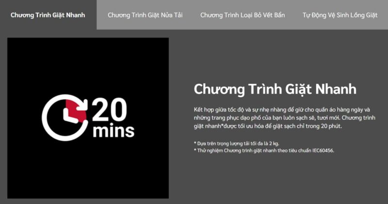 - Chương trình giặt nhanh tiện lợi