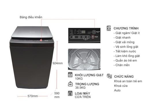 - Nắp kính cường lực mở đóng nhẹ nhàng, đồng thời giảm nguy cơ kẹt tay, tăng cường tính an toàn trong quá trình sử dụng. Kích thước lớn và khả năng giặt 10 kg làm cho máy giặt phù hợp cho gia đình có nhiều thành viên.