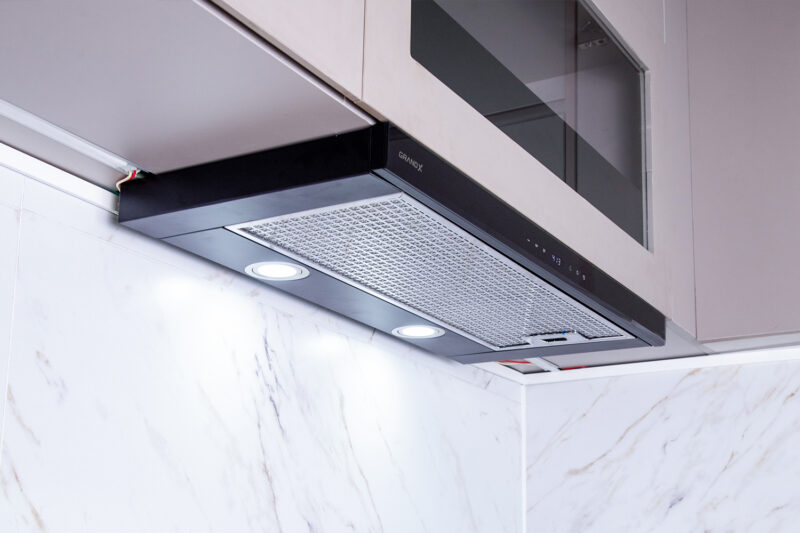 - Máy hút mùi âm tủ GrandX GX H70F58B là lựa chọn lý tưởng cho những căn bếp hiện đại cần sự gọn gàng nhưng vẫn đảm bảo hiệu quả hút khử mùi mạnh mẽ. Với công suất hút lên tới 950 m³/giờ, kết hợp động cơ Tuabin 120W đạt chuẩn European Energy A*, sản phẩm vận hành ổn định, tiết kiệm điện và đặc biệt êm ái với độ ồn chỉ 46 dB.